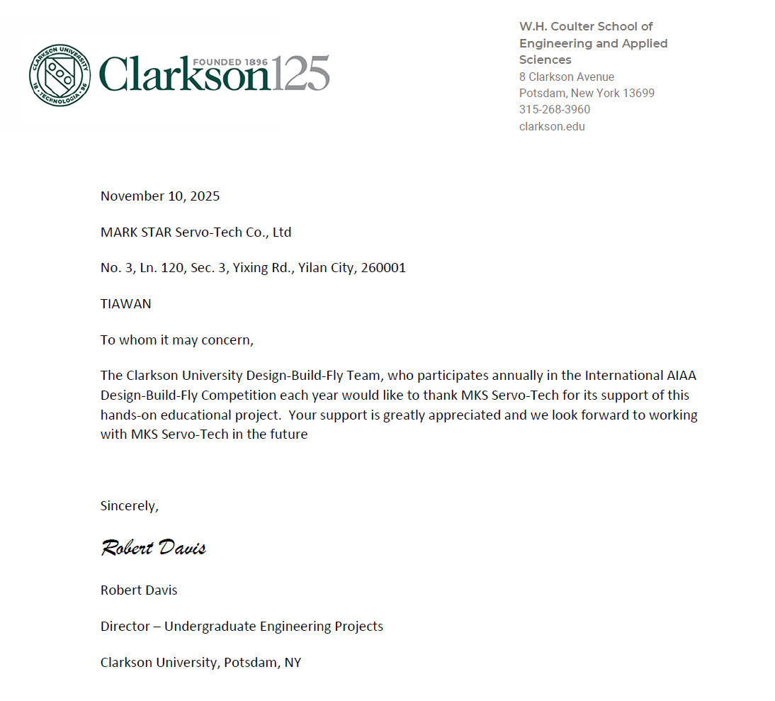 MKS is honored to be a sponsor of Clarkson University DBF Team